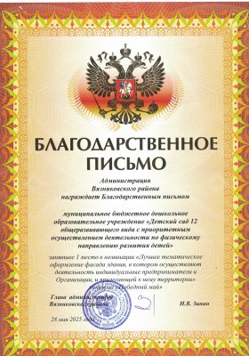 1 МЕСТО в номинации “Лучшее тематическое оформление фасада здания"конкурса "ПОБЕДНЫЙ МАЙ!”
